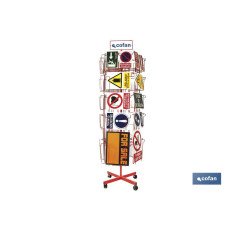 Expositor para Señales con 4 ruedas para más comodidad en el desplazamiento. Medidas de 600 x 1680 mm. Señales no incluidas, solo display para colocar las señales.