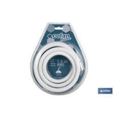 Flexo de ducha para baño. Su tubo interior está fabricado en PVC, de color blanco y con racores de latón. Su longitud es de 1,5 metros. La rosca de 1/2 universal. Ideal para todo tipo de duchas y bañeras. Compatible con todo tipo de mangos de ducha. Diseñadas para una larga duración y un uso continuo. Su instalación es muy segura y fácil. Tiene una buena conexión, puede girar libremente, es muy flexible y no se retuerce.