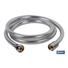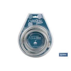 Flexo de ducha para baño. Su tubo interior está fabricado en PVC, su recubrimiento es de material inoxidable en color plata y con racores de latón. Su longitud es de 1,5 metros. La rosca de 1/2 universal. Ideal para todo tipo de duchas y bañeras. Compatible con todo tipo de mangos de ducha. Diseñadas para una larga duración y un uso continuo. Su instalación es muy segura y fácil. Tiene una buena conexión, puede girar libremente, es muy flexible y no se retuerce.