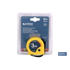 Flexómetro totalmente protegido en goma, con doble acción de bloqueo y freno, carcasa antichoque. Modelos en 3, 5 y 8 metros de longitud.