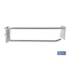 El gancho sencillo con etiquetero cuenta con una placa de anclaje para poder instalarlo en paneles perforados. Indicado para la organización y exhibición de productos en supermercados, ferreterías y cualquier otro espacio comercial. Gracias a su diseño práctico y resistente, este gancho permite colgar productos o herramientas de forma segura y ordenada en estantes y paneles perforados. La placa de anclaje permite su instalación rápida y segura sobre el fondo perforado del panel sin necesidad de retirar los productos que se encuentran alrededor del lugar que se quiera instalar. Además, garantiza una optimización del espacio y la buena presentación de los productos para una mejor experiencia de compra. Este gancho fabricado en acero cincado incluye el etiquetero y tiene una longitud de 200 mm.