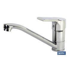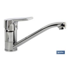 Grifo de fregadero monomando con caño bajo. Fabricado en latón cincado con acabado cromado y boquilla inclinada. Dispone de aireador anti cal, permitiendo reducir salpicaduras y facilitar el ahorro. Incluye latiguillos de alta calidad y kit de fijación. Su caudal es de 8 litros/min. Medidas 12 x 25 x 4 cm. Muy fácil de instalar.