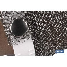 Guante anticorte para carnicero. Está fabricado con una malla metálica de acero inoxidable de muy buena calidad. Es válido para ambidiestros. Es un guante muy resistente y seguro, perfecto para trabajos de riesgo de corte. Tallas disponibles M, L y XL.