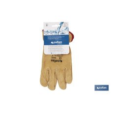 Guantes de piel vacuno amarillos extra repelentes al agua UNE-EN 20388. Tienen el pulgar plano y un ribeteado en la muñeca. Son cómodos, duraderos y resistentes al agua. Estos guantes se caracterizan por hacer que el agua se deslice por su superficie para garantizar la sequedad en las manos y protegerlas de líquidos y sustancias no deseadas. Son cómodos de usar y fáciles de poner y quitar. Pueden utilizarse en múltiples tareas como, por ejemplo, jardinería, manipulación de materiales, agricultura, construcción, ganadería, bricolaje, etc. Son duraderos y resistentes, por lo que garantizan una larga vida útil del producto. Permiten realizar el trabajo de manera segura para proteger las manos mientras que se elaboran las tareas de manera eficiente.
