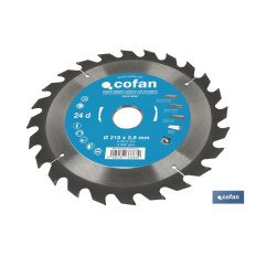 Disco para madera adecuado para utilizarse con sierras circulares. Esta hoja de sierra circular está fabricada en material de aleación de metal duro de alta calidad. Tiene buena resistencia a la presión y al desgaste. La superficie del disco está tratada con un revestimiento antioxidante que garantiza una mayor vida útil de la hoja. También puede aplicarse en sierras de inglete, sierras de mesa, sierras de corte, sierras de paneles y en sierras circulares de mano inalámbricas. El disco de sierra circular es adecuado para cortar madera laminada, vigas de madera, madera dura y plástico. Discos con 20 o 40 dientes y amplia variedad de diámetros: desde 140 hasta 235 mm. Los grosores son de 2,5 o 2,8 mm y los ejes centrales desde 20 mm hasta 30 mm.