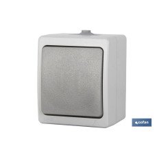 Conmutador estanco IP44 (grado de protección al polvo y agua) L-N. Apto para exteriores y jardines. Color gris. 16 A 250 V.