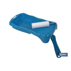Kit de Esmaltar compuesto de rodillo de espuma de 11 cm y cubeta de 16 x 31 cm. Este kit de bandeja y rodillo de pintura ofrece un acabado suave y sin salpicaduras. Ideal tanto para uso profesional como para uso doméstico. Este kit se puede utilizar con pinturas o barnices indistintamente para un trabajo más rápido y limpio.