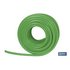 Manguera de riego Flexolátex para jardín con accesorios (2 adaptadores de manguera, 1 adaptador de grifo y 1 boquilla regulable).Es perfecta para utilizarla en jardines, terrazas, cocheras, camping, etc. No se dobla y es muy resistente a la abrasión.Está fabricada en PVC de muy buena calidad. Cuenta con tres capas y una malla de refuerzo en color verde translúcido que la hace muy duradera y resistente.Disponible en diferentes diámetros (Ø15 mm y Ø19 mm) y con diferentes medidas, desde 10 m hasta 20 m de longitud.Recomendamos tenerla expuesta a una temperatura que oscile entre - 10 °C y + 60 °C.