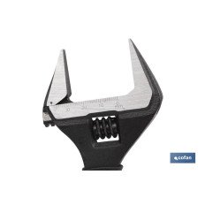 Llave inglesa reversible de gran apertura Confort. Está fabricada en acero al cromo-vanadio de alta calidad que le aporta una mayor resistencia y duración. Su superficie con revestimiento de cromo la protege del óxido y la hace resistente a la corrosión. Las medidas van desde 6/15 cm hasta 10/25,5 cm. Sistema de apertura mediante moleta central muy preciso. Milimetrada por ambos lados para ajustes rápidos. Se utiliza para tareas de mantenimiento y reparación de automoción, fontanería y reparación en general. Es una llave muy precisa, sin holguras, permite realizar grandes esfuerzos, no daña la tuerca y tiene una larga vida útil.