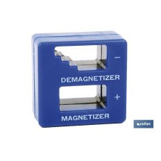 Magnetizador y desmagnetizador para destornilladores y puntas de atornillar, sirve para convertir fácilmente y de manera temporal un destornillador en imán, o bien, para quitarle esa propiedad imantadora. Medidas: 30 x 50 mm. Peso: 70 gramos. Color azul.