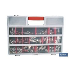 Maletín surtido de enchufes y conectores rápidos neumáticos, contiene todas las roscas posibles. Permite con pocas unidades hacer cualquier composición de racores industriales.
