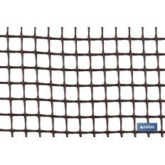 Rollo de malla en PVC en color marrón, el tamaño o dimensión del cuadrado es de 10 mm de lado. Se vende en rollos de 1 metro de alto x 25 metros de longitud. Está fabricado en PVC de muy buena calidad. Esta malla es multiusos ya que sirve para reforzar y delimitar zonas sembradas o florecidas, protección de barandillas evitando la caída de objetos o para cerrar balcones. Es muy resistente e inmune a los agentes químicos y atmosféricos, gracias a su material son resistentes y duraderas.
