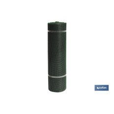 Rollo de malla en PVC en color verde, el tamaño o dimensión del cuadrado es de 10 mm de lado. Se vende en rollos de 1 metro de alto x 25 metros de longitud. Está fabricado en PVC de muy buena calidad. Esta malla es multiusos ya que sirve para reforzar y delimitar zonas sembradas o florecidas, protección de barandillas evitando la caída de objetos o para cerrar balcones. Es muy resistente e inmune a los agentes químicos y atmosféricos, gracias a su material son resistentes y duraderas.