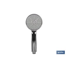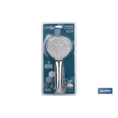 Mango de ducha cromado para baño. Cuenta con 3 funciones de pulverización. Provisto de salidas de agua anti cal. Las medidas del mango de 5 funciones son de 22 x 10 cm. Es muy ligero y cuenta con una sencilla y fácil instalación. El acabado cromado es resistente a los arañazos y muy fácil de limpiar. Las salidas de agua del mango de ducha, o teléfono de ducha, son de silicona suave. Basta con unos movimientos de dedos para eliminar sales que pudieran llegar a bloquear el flujo de agua. Adecuado para cualquier tipo de manguera de ducha universal.