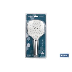 Mango de Ducha modelo ABS Cromado para baño en color blanco. Incluye un mango con 3 funciones de hidroterapia (ducha, masaje, ducha + masaje) también cuenta con un pulsador adicional. Provistos de salidas de agua anti cal. Las medidas del mango son de 24,5 x 12 cm. Su instalación es muy sencilla y el peso es ligero. Es muy cómodo de usar ya que contiene un botón de flujo de agua, mucho más conveniente que el cabezal de ducha tradicional. El modo de salida del agua y el diseño de presurización son adecuados para adultos, niños y mascotas, y adecuados para familias, spas, hoteles, gimnasios y otros lugares de baño