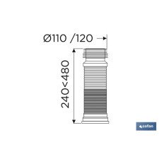 Manguito de conexión extensible para inodoro. Este manguito es extensible hasta 480 mm de longitud total. Incluye goma labiada para un perfecto ajuste, sin fugas. Fabricado en polipropileno de alta calidad que garantiza una perfecta durabilidad. La boca de salida dispone de un diámetro de 103/110 mm.