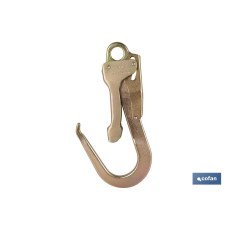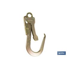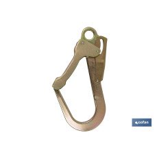Mosquetón para andamios con bloqueo automático de doble acción. Fabricado en acero galvanizado de muy buena calidad. Su agarre es ergonómico y muy cómodo. Es considerado como gancho conector de tubo y andamio, muy usado en el montaje de plataformas de andamio en el sector de la construcción. EN362:2004 CLASS T.