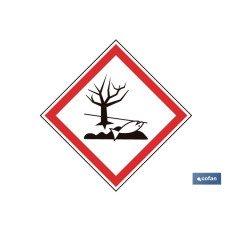 Señalización Adhesivos Residuos Tóxicos PELIGRO DAÑINO PARA EL MEDIO AMBIENTE ACUATICO. Medidas 100x100 mm. El diseño de la señal puede variar, pero en ningún caso se variará el significado de la misma.