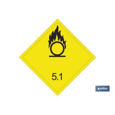 Señalización Adhesivos MATERIAS PELIGROSAS - MATERIAS COMBURENTES. Medidas 100x100mm y 300x300mm. El diseño de la señal puede variar, pero en ningún caso se variará el significado de la misma.