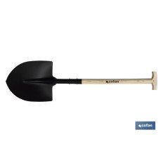 Pala redonda de acero acabado en puño moleta abierta de madera, medidas en 325x265x1020mm y 335x285x1030mm