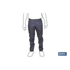 Pantalón de trabajo modelo Servet. Su Composición: 65 % poliéster/35 % algodón - 245 g/m2. Cierre central con cremallera y botón, cuenta con un bolsillo para portar el móvil y otro bolsillo con doble pliegue. Tallas disponibles desde la 38 hasta la 64. Colores: verde, gris, azul marino y verde oscuro.
