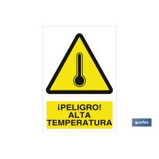 Señal de advertencia de peligro alta temperatura. Tamaño y material a elegir. El diseño de la señal puede variar, pero en ningún caso se variará el significado de la misma.