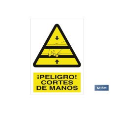 Señal de advertencia de peligro cortes de manos. Tamaño y material a elegir. El diseño de la señal puede variar, pero en ningún caso se variará el significado de la misma.
