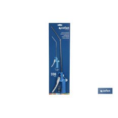 Pistola sopladora larga 330 mm, con una boquilla metálica curva de 33 cm y cuerpo de nylon. Estructura duradera ya que está hecha de un material altamente resistente con un acabado especial antioxidante y anticorrosivo. Es duradera y lo suficientemente fuerte como para soportar un uso intensivo.