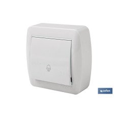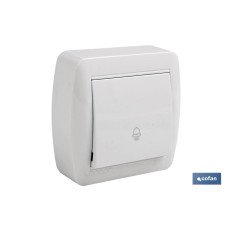 Mecanismo pulsador de campana de superficie en color blanco. Modelo Atlantis. Características: 10 A 250 V.