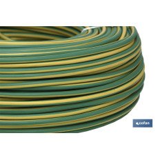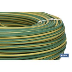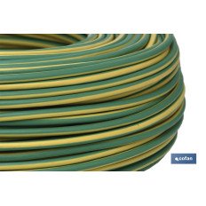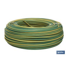 Rollo de 100 metros de cable eléctrico H07V-K, disponible en color verde y amarillo, con medidas desde 1,5 mm2 hasta 6 mm2.