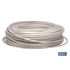 Rollo de cable de antena TV coaxial de alta calidad. Con 75 ohmios. Color blanco. Longitud del rollo de 100 metros. Se utiliza para conectar la TV a la toma de antena.