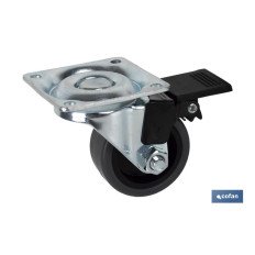 Rueda de goma gris con placa giratoria y freno de plástico, ideal para utilizar en hostelería, mobiliario, expositores, mostradores, decoración y equipamiento comercial. Esta rueda es adecuada para uso industrial y doméstico. Está fabricada de goma dura de color gris y acero cincado, por ello, no araña ni daña el suelo, por lo que pueden usarse en suelos delicados sin causar ningún daño. Soporta un peso máximo de 32 kg.Disponibles en pack de 4 unidades.