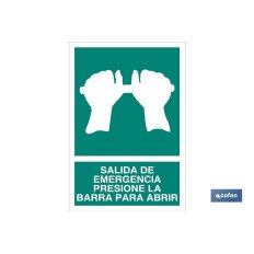 Señal texto presione para salir luminiscente en varias medidas. El diseño de la señal puede variar, pero en ningún caso se variará el significado de la misma.