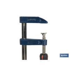 Sargento de sujeción modelo F. Está fabricado en hierro fundido de muy buena calidad. Sus aperturas van desde 150 hasta 400 mm y de anchura desde 50 hasta 120 mm. Su mango ergonómico le ahorra fuerza a la mano a la vez que le proporciona un excelente agarre. La parte de hierro con mango se puede ajustar fácilmente mediante una barra deslizante, para materiales con diferentes anchos. Puede soportar un trabajo intensivo, duro y duradero. Es ideal para trabajar con madera o hierro.