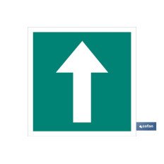 Señal de Dirección Evacuación. Señal en Pictograma. Tamaño y material a elegir (luminiscente y adhesivo). El diseño de la señal puede variar, pero en ningún caso se variará el significado de la misma.