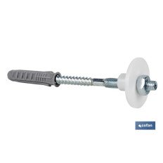 Set de 2 piezas de taco con tuerca de hierro para lavabo. Se utilizan como anclajes para la fijación de lavabos. Su instalación es rápida y sencilla y son aptos para una gran variedad de materiales, tanto huecos como macizos: hormigón, hormigón ligero, bloque hueco de hormigón, piedra natural, ladrillo macizo, ladrillo hueco y madera. Estos tacos son con tuerca de hierro. Los elementos metálicos, de nylon y goma poseen un elevada resistencia a agentes químicos y a condiciones húmedas. Medida de Ø 8 o 10 de diámetro y longitud de 100 o 120 mm.