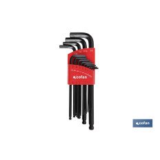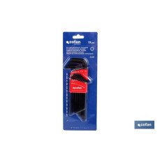 Set de LLaves de Allen con forma de bola, medidas en pulgadas. El juego contiene 13 piezas o llaves fabricadas en material de acero cromo vanadio. Disponible en varias medidas.