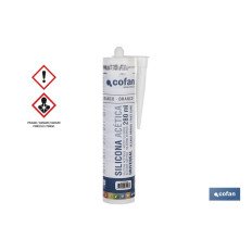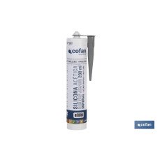 Silicona acética o ácida de color blanco, gris, negro o transparente envasada en cartuchos de 280 ml. Sellante de silicona monocomponente de reticulación acética que, en contacto con la humedad atmosférica, se convierte en una junta elástica. Está especialmente formulada para la aplicación en el sellado de todo tipo de juntas sanitarias de estanquidad, en materiales como vidrio, cerámica y materiales vitrificados, aluminio anodizado o fibra de vidrio. PRECAUCIONES: Se recomienda emplearlo en zonas ventiladas. Evítese el contacto con los ojos y la piel. En caso de contacto con los ojos lávenlos inmediata y abundantemente con agua y acuda al médico. Manténganlo fuera del alcance de los niños. Para más información consulte la ficha técnica.