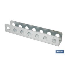 Práctico soporte en el que puedes añadir hasta 7 destornilladores. Está especialmente diseñado para que puedas colgar tus herramientas en el panel de herramientas perforado. Ten tu zona de trabajo y tus herramientas bien ordenadas con los accesorios de almacenaje de Cofan. Este soporte no solo puede utilizarse para destornilladores, sino que también puedes colgar martillos, llaves de tubo, alicates u otro tipo de llaves. Este soporte es fácil de instalar en el tablero de herramientas. Fabricado en acero galvanizado de alta calidad. Cuenta con una longitud de 220 mm.