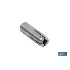 Taco de acero inoxidable de anclaje hembra de expansión. Para materiales macizos con rosca métrica interior. Anclaje de acero inoxidable que consta de un cuerpo roscado interiormente y un elemento interno expansor con forma cónica. Fijación de alta seguridad y resistencia. El anclaje requiere de poca profundidad de empotramiento y carece de deslizamiento. Se introduce directamente en el agujero que hacemos en el hormigón, utilizando un expansor y con la ayuda de un martillo golpeamos el cono interior hasta que la fijación quede perfectamente expandida.