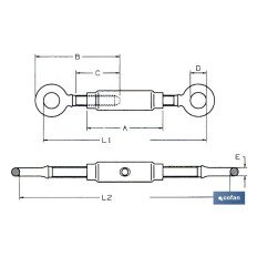 El tensor anilla - anilla zincado DIN-1480 se utiliza para aparejar cables, barras, cabos Diseñado para cargas a tiro directo para tensar o para trincaje. Gran calidad del roscado del cuerpo y de la conexión.