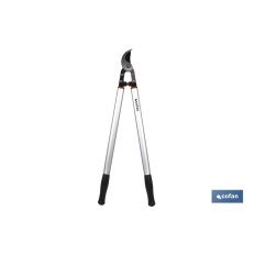 Tijeras de podar a dos manos con mangos de aluminio y corte de diámetro 40mm. La longitud total de las tijeras es de 75 cm. Están forjadas en acero al carbono con cabezal de corte clásico. Esta herramienta es ideal para realizar tareas de poda con precisión y potencia sin necesidad de realizar esfuerzos excesivos. Gracias a su longitud y apertura, se consigue una precisión en la poda y corte de ramas. Evita el retroceso agresivo gracias a su sistema de goma anti retroceso que amortigua el impacto en cada corte. Los mangos, de ergonomía profesional, favorecen en el proceso de poda y aportan comodidad en la tarea. Además los mangos evitan la fatiga de las manos. Este producto puede ser utilizado para uso doméstico y profesional.