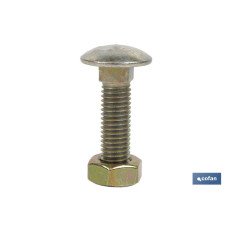 Tornillo agrícola de cabeza redonda y cuello cuadrado adecuado para utilizarse tanto en el sector industrial como en el agrícola. Ideal para cosechadoras. Se trata de un tornillo de calidad 8.8 fabricado con un acabado bicromatado. Incluye una tuerca hexagonal DIN 934 de calidad 8. El tornillo se suministra en cajas de 50 unidades.