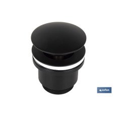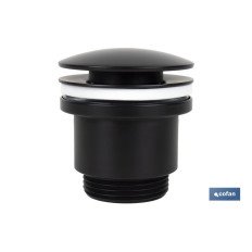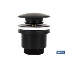 Válvula click-clack de latón con acabado negro mate. Esta válvula click-clack incluye un tapón grande Ø63 mm. Sistema click-clack anti calcáreo. Totalmente fabricada en latón. Mecanismo de cierre de latón con muelle inoxidable. Válvula universal, ya que es adaptable a todos los lavabos con y sin rebosadero. Altura del cuerpo regulable máx. 70 mm. Rosca 1 1/4.