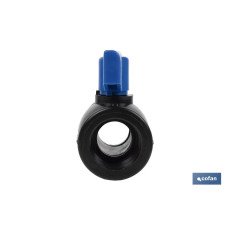 Válvula de bola con dos roscas hembra BSP de la misma medida para tuberías de polietileno (PE).Adecuada para trabajar en sistemas de conducción de agua con una presión nominal de 16 bares. Esta válvula de bola está fabricada en polipropileno de alta calidad y durabilidad, con un acabado de color negro y una palanca de color azul. Disponible en diferentes medidas. Puede comprarse en pack o de forma unitaria, según la medida.