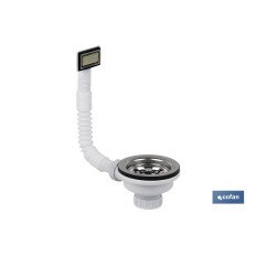 Válvula para fregadero de 1 1/2 x 115. Incluye cesta rejilla de acero inoxidable y tornillo para la instalación en fregaderos inoxidables y sintéticos. Incluye 2 modelos de rebosaderos: rectangular y redondo. Está fabricada en polipropileno de alta calidad. Alta capacidad de desagüe.